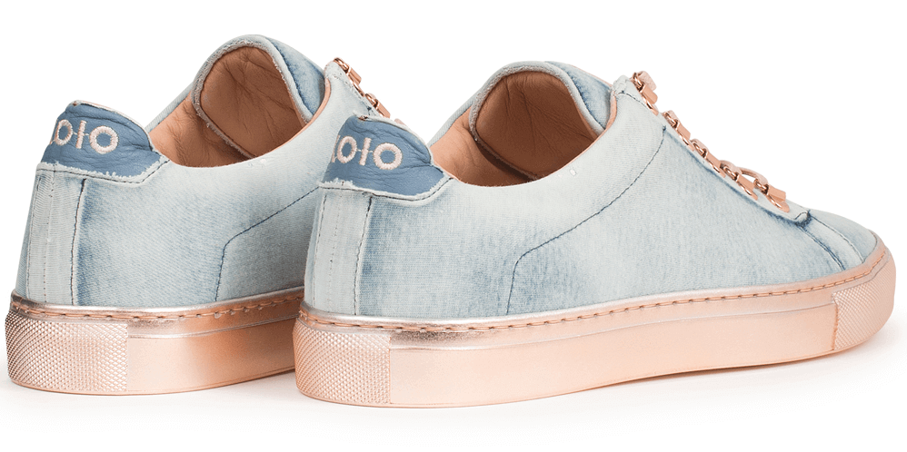 "I personally have a lot of denim in my wardrobe, and I think a light denim is so cool for the warmer summer days. Also, the wash makes it look like the ocean. I love the rose gold sole and eyelets. I think it dresses it up a little bit, and Rose is my middle name."